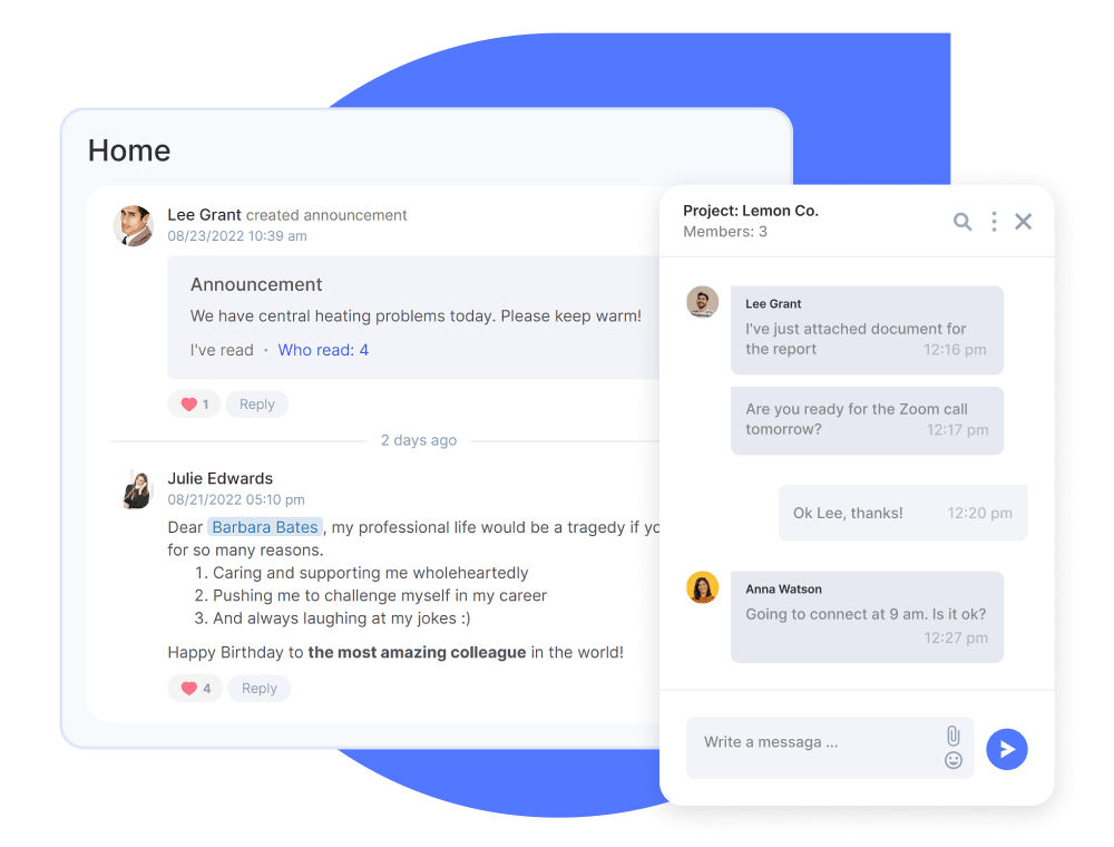 Discuss projects, tasks, deals and customers with your colleagues and external users. Wherever you are, always be in the loop! Turn your team into an efficient machine working towards a single goal.